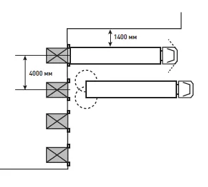 Перегрузочные тамбуры можно установить вплотную друг к другу. Однако при одновременной парковке грузовиков к соседним постам такое решение может создать затруднения для персонала склада и перевозчика с открытием дверей кузова и кабины. Поэтому при проектировании рекомендуется предусмотреть расстояние между осями перегрузочных постов не менее 4000 мм. Это обеспечит беспрепятственное и комфортное открывание дверей кузова грузовика, а также дверей кабины для свободного доступа к ней водителя.