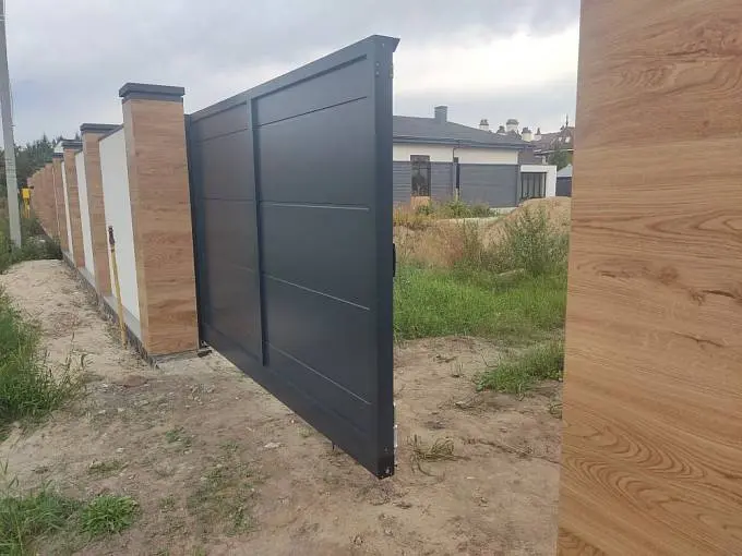 При строительстве забора, сразу решил, что нужны откатные ворота. Откатные ворота не зависят от забора, т.е. всегда будут функционировать.