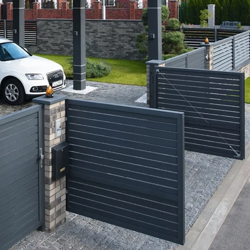 Алюминиевые ламели располагаются горизонтально и сохраняют односторонний обзор: с участка на улицу.